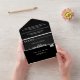 Esta elegante invitación de boda en blanco y negro es perfecta para una boda moderna. el diseño simple presenta caligrafía blanca elegante sobre un fondo negro.