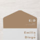 Este minimalista y elegante boda de boda, todo en una sola invitación, es perfecto para un boda clásico. El diseño presenta una fuente elegante en un fondo marrón y blanco para embellecer tu evento.