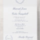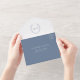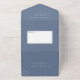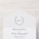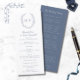 Nuestras Invitaciones de boda todo en uno encapsulan tu historia de amor en un paquete elegante. Con un romántico escudo botánico en tonos azules de ensueño, estas invitaciones se desarrollan para revelar todos los detalles de su encantador boda tradicional.