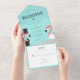 Una invitación de boda todo en uno con un tema de flamingo. Esta invitación incluye una novia flamingo y un novio flamingo. Incluye la invitación y una tarjeta RSVP despedazada. Simplemente agregue su información, añada esta invitación a su carrito y disfrute de su boda lleno de flamingo.