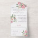 Invitación Todo En Uno Boda floral acuarela moderna peonía rosa