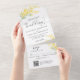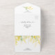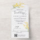 Invitación Todo En Uno Boda floral amarillo dorado Detalles del código QR