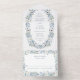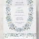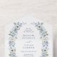 Boda Floral Azul todo en una sola invitación. Podrá pasear por un jardín de belleza botánica y descubrir un impresionante diseño boda todo en uno, con hermosas flores de acuarela pintadas a mano dispuestas en una hermosa corona y marco vintage. Las delicadas rosas azules, crema y blancas y la vegetación de eucalipto verde salado crean una elegancia rústica, perfecta para su evento especial. La fuente azul-gris y los toques sutiles de azul complementan perfectamente el diseño atemporal. Permita que esta exquisita invitación exprese su rústica elegancia romántica y estilo atemporal.