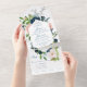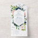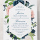 Invitación Todo En Uno Boda floral azul marino y rubor