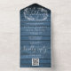 Invitación Todo En Uno Boda floral Blue Rusn Wood QR Code