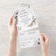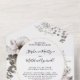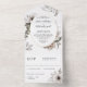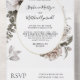 Estas invitaciones a bodas presentan un elegante diseño floral con rosas, eucaliptos, flores para el aliento del bebé, follaje y un falso borde de oro.Personalice su texto. También se dispone de material de papelería de correspondencia.