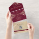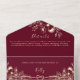 Invitación Todo En Uno Boda floral en oro y borgoña