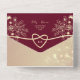 Elegante y romántica, esta invitación de boda floral en borgoña y oro presenta delicadas ilustraciones inspiradas en la vintage, un detalle de corazón simbólico y una tarjeta de respuesta incorporada con código QR. El rico fondo borgoña combinado con acentos florales en oro de estilo metálico crea un ambiente audaz y lujoso, perfecto para bodas de otoño, celebraciones formales o temas rústicos-chic. Un diseño elegante y conveniente todo en uno con encanto atemporal.