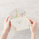 Celebra tu amor con esta elegante invitación de boda en marfil todo en uno que presenta flores silvestres coloridas en acuarela, una superposición de fotos y un delicado monograma floral. Este diseño ecológico se pliega en su propio sobre, sin necesidad de sobres separados.