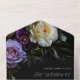 Nuestra invitación a una boda floral gótica moderna enmarca tus nombres y detalles bodas con marfil, flores borgoñas y moradas, follaje verde y bayas oscuras. La invitación de boda todo en uno incluye una postal RSVP desmontable para que sus invitados puedan enviársela por correo con sus respuestas y opciones de comida. Diseñado para coordinar con nuestra colección Moody Gothic Floral boda.