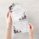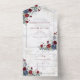Invitación Todo En Uno Boda floral ligera y turbia azul borgoña