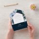 Un diseño floral azul marino y azul polvoriento perfecto para sus bodas de verano y otoño. Puede cambiar la redacción, el tamaño del texto, el color y la fuente de esta plantilla. También se puede editar el fondo de la Marina