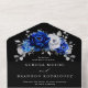 Invitación Todo En Uno Boda floral metálico plateado azul real Al