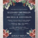 Sorprenda a sus invitados con esta elegante invitación de boda con hermosas flores con una tarjeta postal RSVP desmontable. Simplemente agregue los detalles de su evento en esta plantilla fácil de usar para convertirla en una invitación única.