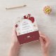 Una romántica invitación todo en uno con rosas rojas rubíes y flores blancas suaves, con un diseño plegable y una tarjeta postal RSVP desgarradora, que combina perfectamente elegancia y practicidad.