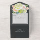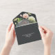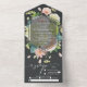 Elegantes hortensias blancas y verdes, rosas rosados y crema, mareas y vegetación sobre un fondo oscuro, estas invitaciones triples a bodas incluyen sus detalles en secciones con letras de moda y una tarjeta RSVP desmontable para que los huéspedes la completen y regresen. **RECUERDE poner un sello postal en la sección de tarjetas RSVP y un sello regular en la sección de correo a dirección!