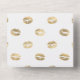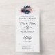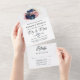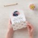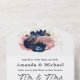 Invitación de boda floral rosa, azul marino y dorado con tipografía elegante sellada con un beso.