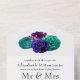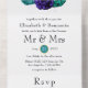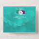 Invitación a una boda floral violeta y turquesa (verde azulada) con acentos de personalizable morado a los detalles de tu evento.