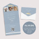Moderna y romántica, esta polvorienta invitación a una boda azul en uno cuenta con tres franjas fotográficas, un diseño elegante de aves amantes del oro falso y un código QR incorporado para un fácil acceso a RSVP. Perfecto para las parejas con conciencia ecológica, ¡no se necesita ningún sobre! El diseño limpio incluye espacio para el sitio web de su boda y detalles personalizados, lo que lo convierte en una elección conveniente y elegante para su celebración.