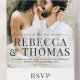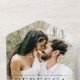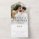 Un superpuesto moderno con nombres grandes y una foto con todas las imágenes son las características de todo esto en una invitación a la boda con tarjeta de respuesta desgarradora.