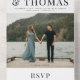 Un tipo moderno con nombres grandes y una foto del panel del centro de fotos de la sangre completa son las características de todo esto en una invitación a la boda con tarjeta de respuesta desgarradora.