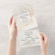 Una elegante invitación de boda floral geométrica dorada con acuarela, fácil de personalizar con tus datos. POR FAVOR TEN EN CUENTA: Esta invitación está lista para enviar sin sobre; incluye la dirección de devolución en el reverso; si planeas enviarla usando un sobre, por favor deja en blanco los detalles de la dirección de devolución ( reverso). DIRECCIONAMIENTO AL INVITADO: Esta plantilla incluye la dirección del destinatario en el tamaño de fuente; debes personalizar cada invitación con los detalles del invitado uno por uno y agregarla uno por uno al carrito; si no deseas utilizar el direccionamiento al invitado, por favor déjalo en blanco en cada línea.