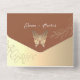 Elegante, moderno bohemio, guión de caligrafía, oro boho y boda de terracota todo en uno con la foto de la pareja y adorable y único y adorable mariposa dorada, símbolo de renacimiento espiritual, esperanza y vida. Añade tu foto, detalles del boda y rsvp.