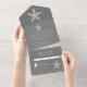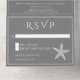 Elegante y simple Boda, todo en una sola invitación con una estrella de mar y un sencillo diseño de texto. Este diseño es una elección única para un boda moderno. Fácil de personalizar con los detalles de su boda. Haga clic en "Personalizar" para encontrar más opciones de personalización.