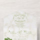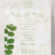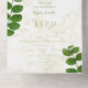 Invitación a boda de diseño de temática verde con tarjeta RSVP.