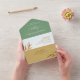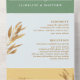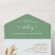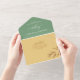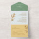 Elegante y moderna invitación a la boda todo en uno con RSVP perforado en una hermosa paleta de colores con tonos amarillos, verdes y grises. Cada sección en un tono rico diferente. Delicadas hojas de Relieve metalizado de oro falsas que muestran tus detalles. Invitación amigable con el medio ambiente ya que no hay necesidad de tarjetas de inserción extra, tarjetas RSVP o incluso sobres, esta invitación tiene todo! Posibilidad de añadir detalles de la ceremonia Boda y de la recepción, así como postales RSVP listos para que los huéspedes rellenen y envíen por correo. Elegante diseño minimalista blanco y negro con detalles modernos de caligrafía escrita a mano. Opción para solicitar invitaciones con el nombre de invitado impreso (o a mano más tarde) en la parte posterior para que pueda enviarlo por correo sin necesidad de sobres. Si prefiere usar sobres, simplemente borre el nombre de invitado y los caracteres de dirección de los cuadros de texto para eliminarlos. Un diseño moderno y atractivo, ideal para una pareja elegante, práctica y ecológica.