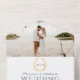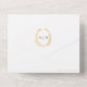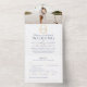 Invitación Todo En Uno Boda hojas de oval dorado blanco azul monograma fo