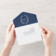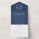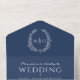 Invitación Todo En Uno Boda hojas ovales de color azul oscuro monograma