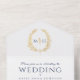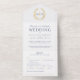 Invitación Todo En Uno Boda hojas ovales de oro blanco azul monograma