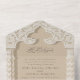 Esta invitación a una boda islámica con una conveniente sección perforada de RSVP es el epítome de la elegancia y la funcionalidad. Presenta un diseño sofisticado con un estilo clásico de arco y patrones de chevron en una refinada paleta de taupe, crema y marfil. El borde perforado permite a los huéspedes desgarrar fácilmente el RSVP, asegurando un proceso de respuesta sin fisuras. Mantenido en la mano, presenta un aspecto cohesivo que combina perfectamente el arte islámico tradicional con la comodidad moderna, perfecto para la pareja que busca una manera elegante y eficiente de manejar su correspondencia boda.