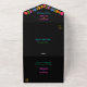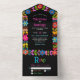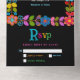 Celebra tu amor con audaz elegancia usando esta invitación a una boda mexicana moderna. Con un vibrante marco floral inspirado en el arte folclórico tradicional mexicano, el diseño rebosa de ricos tonos rojos, amarillos, rosas y turquesas, con un llamativo fondo negro. Este formato todo en uno combina su invitación y RSVP desgarradora en un diseño sin fisuras, práctico y bellamente cohesivo. El colorido borde floral aporta encanto festivo y calidez cultural, mientras que la tipografía moderna y limpia aporta un toque de sofisticación. Perfecto para las parejas que desean una invitación de diseño y vibrante que da una impresión duradera.