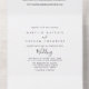 Este sencillo boda minimalista, todo en una sola invitación, es perfecto para un boda rústico. El diseño, sencillo y elegante, presenta una tipografía de escritura clásica y elegante en blanco y negro. Guarde el papel incluyendo más detalles en la invitación en lugar de en una tarjeta separada.
