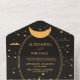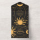 Invitación Todo En Uno Boda Mística del Sol Luna Negro y Dorado