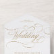 Invitación Todo En Uno Boda moderna caligrafía atemporal oro y blanco