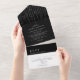 Invitación Todo En Uno Boda moderna plateada, negra y blanca brillante