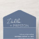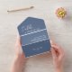 El moderno código QR azul polvoriento, todo en una sola invitación matrimonial con un diseño sencillo y mínimo, con el nombre de la novia en un guión elegante y el nombre del novio en una fuente contemporánea sans serif. Debajo, en la esquina inferior derecha, están los detalles de los eventos en un diseño minimalista. Si lo prefiere, el código QR puede eliminarse en la herramienta de edición de diseño.