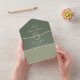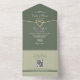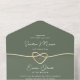 Elegante y minimalista, esta invitación a la boda todo en uno de color verde oliva cuenta con un romántico corazón de cuerda dorada, una moderna tipografía y una sección RSVP integrada con un conveniente código QR. La suave paleta de salvia-oliva aporta un toque honesto y refinado, perfecto para bodas al aire libre, minimalistas o de inspiración natural. Ideal para parejas modernas que buscan un diseño limpio y elegante con un símbolo de amor.