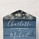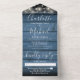 Invitación Todo En Uno Boda Monograma de Rustic Blue Wood String Luces