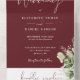 Toda una invitación a una boda rosa de palisandro que incluye vegetación botánica, hojas rústicas y tipografía elegante. La invitación incluye una tarjeta RSVP perforada que puede ser dirigida individualmente o dejada en blanco para que pueda escribir a mano los detalles de la dirección de su invitado. Diseñado por Thisisnotme©
