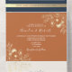 Elegante, moderno, simple terracota y azul marino invitación a la boda todo en uno con falso encaje floral de oro y sencillo guión de caligrafía manuscrita. Agregue los detalles de su boda y rsvp.