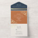 Invitación Todo En Uno Boda Navy Blue y Terracotta