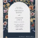 Boda del Boho de la Marina en una sola invitación. Esta elegante y elegante invitación a la boda se caracteriza por unas magníficas flores de acuarela pintadas a mano dispuestas como un marco encantador junto con una tarjeta RSVP que incluye un código QR. Encontrar elementos coincidentes en la colección de Bodas Navy Boho Wildflower.