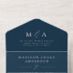 Elegante todo en una invitación de boda con sus iniciales de monograma y detalles bodas en texto blanco con modernos acentos de escritura caligráfica con un fondo marino. El diseño incluye una tarjeta RSVP desmontable que se puede enviar por correo como postal. Diseñado para coordinar con nuestra colección de bodas Modern Elegance.