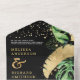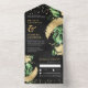 Invitación Todo En Uno Boda negro de oro verde tropical Monstera Palm
