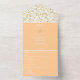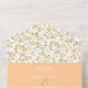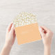 Elegante y de moda tres veces de durazno elegante y blanco con invitación de boda dorada floral con tarjeta RSVP.