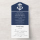 Invitación Todo En Uno Boda oceánico moderno elegante azul de la Marina N